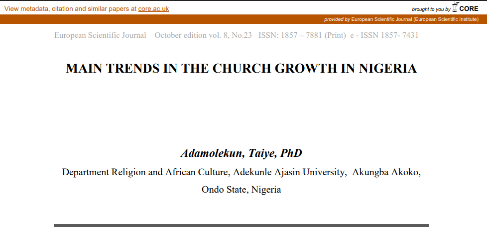 History of Church Growth in Nigeria Authors: Adamolekun, Taiye